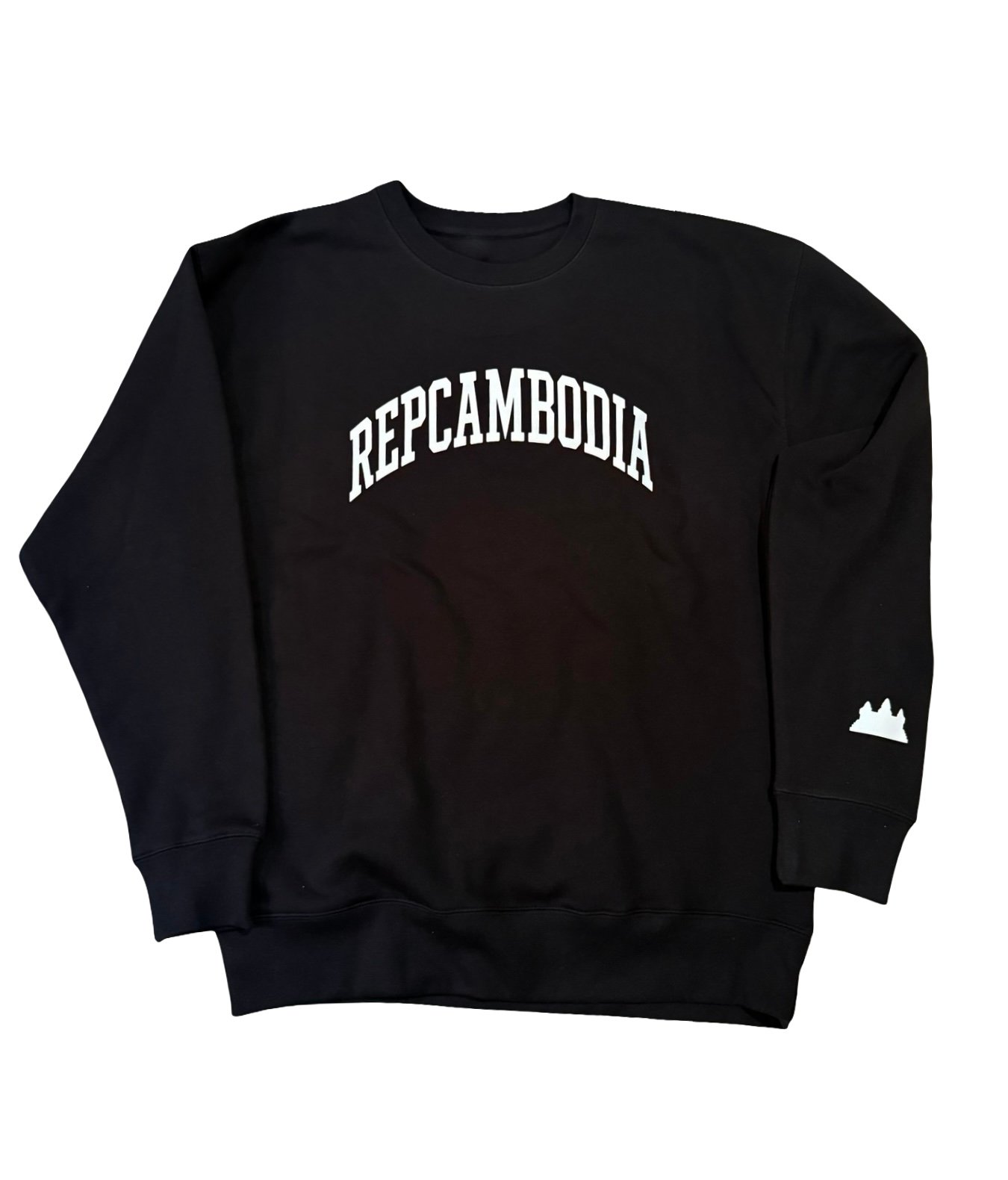 The Repcambodia Arch Crewneck is a classic everyday sweater with a cultural touch. It features a bold arched Repcambodia print across the chest and a small Angkor Wat graphic on the sleeve cuff for a subtle detail that stands out. Made from a soft and durable cotton blend, it has a comfortable fit that works for any season. This piece pairs easily with jeans, sweats, or shorts, giving you a clean look that represents Khmer pride in a timeless way.